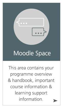 This Programme starts with the launch of the ‘Moodle Space’ area where you will have a one week settling in period. During this period you will familiarise yourself with the contents of the ‘Moodle Space’ area. Here you will find an overview of the programme, guidance material and details of the learning support available to you.